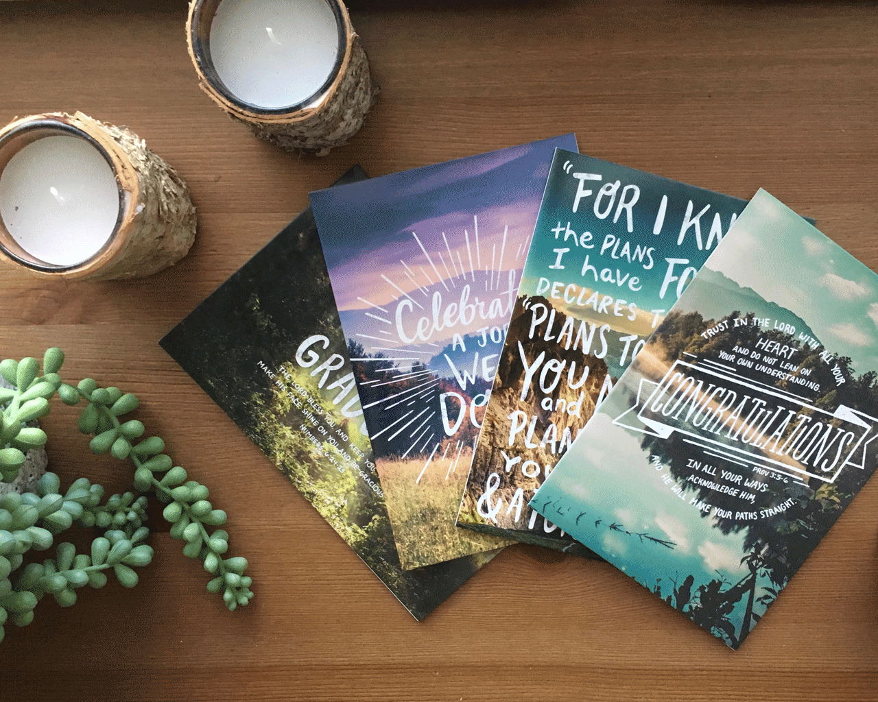 For this graduation occasion, the buyer was specific about using stock imagery for a gender -neutral card set. I wanted to incorporate a hand done feel to pair with the natural photos. At the time there wasn’t a good font to use, so I hand drew each verse on paper and digitized the letters in Illustrator to adjust spacing, scale, etc. This hand lettered set was then turned into a font to use for in-house projects.